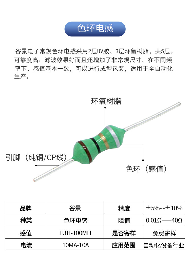 蘇州谷景電子有限公司,一家從事貼片電感,色環電感,工字電感,磁環電感,線圈電感,定制電感服務的電感廠家,電感生產商。我們支持色環電感的產品定制,如想了解更多關于色環電感定制的問題可撥打我們的電話,咨詢熱線:0512-66715887/0512-89162980